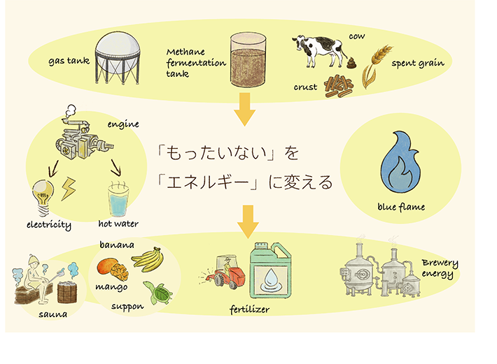 さらに、仕込み後の麦芽粕やパンは、なんとメタン発酵でバイオエネルギーに!